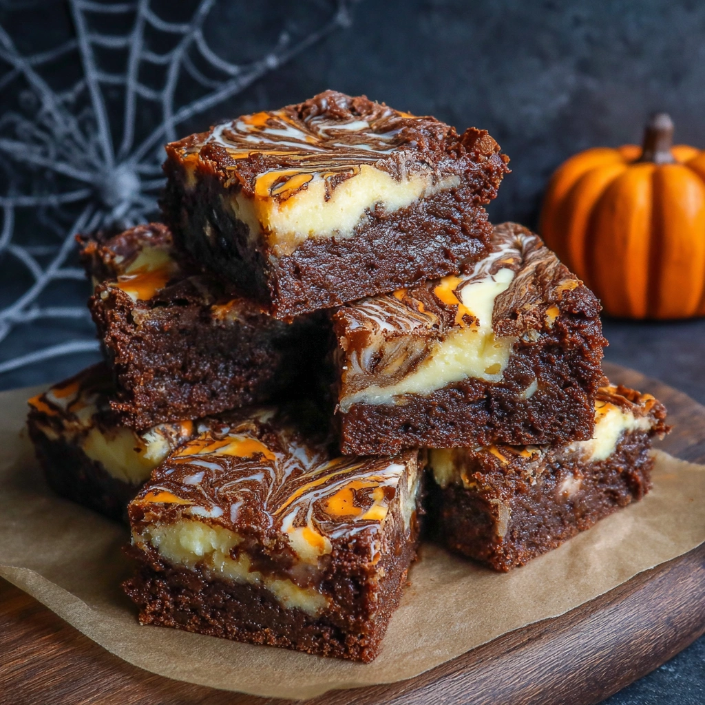 Halloween Swirl Cream Cheese Brownies — A festive, two-layer shortcut